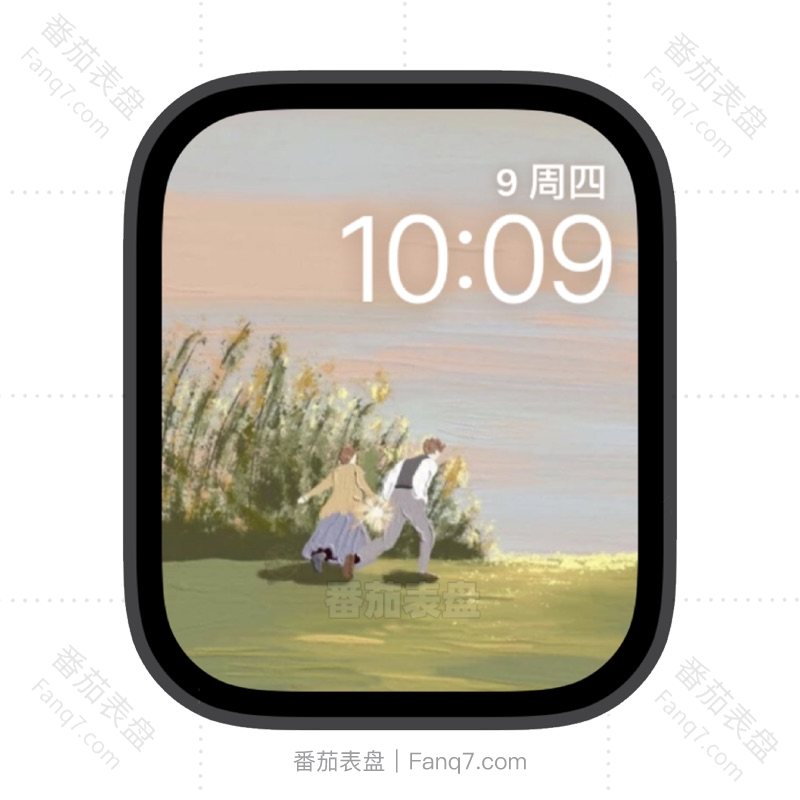 油画情侣奔向河边苹果iwatch壁纸表盘.watchface