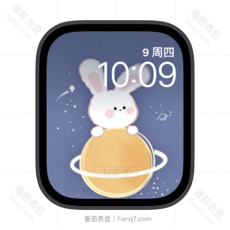 流星可爱小白兔抱着土星苹果iwatch壁纸表盘.watchface