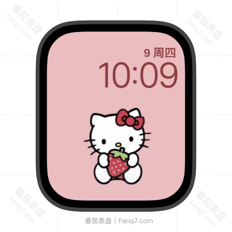 可爱hello kitty猫手握红色草莓苹果iwatch壁纸表盘.watchface