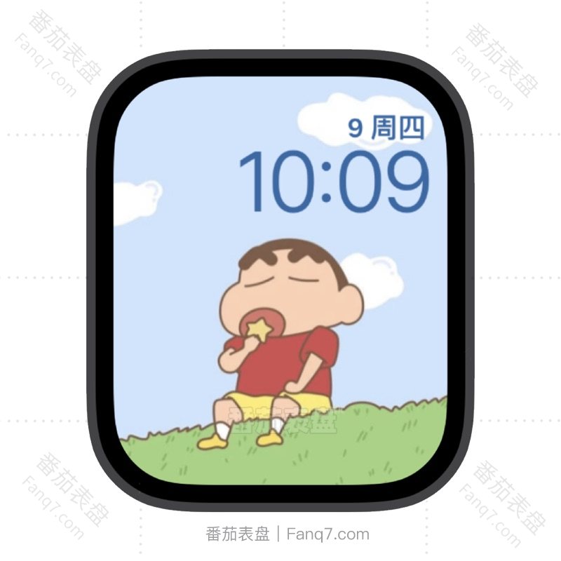 坐在草地上的蜡笔小新吃星星苹果iwatch壁纸表盘.watchface