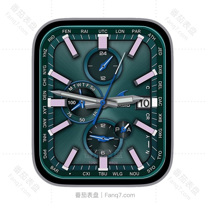 CASIO卡西欧浅蓝拉丝金属背景日志刻度指针四盘表盘.clock&clcok2