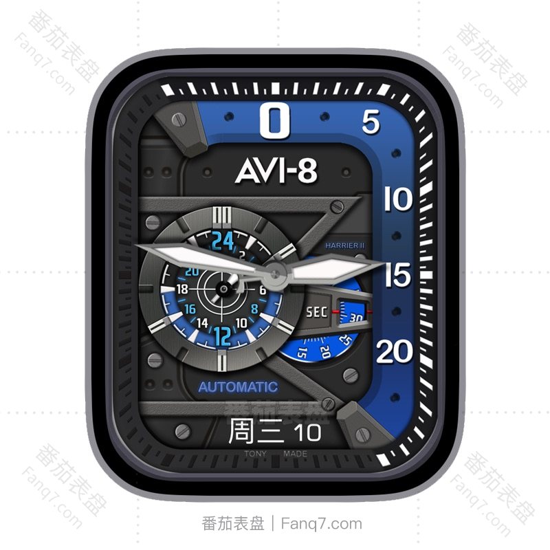 AVI-8 HARRIER II复古深灰机械风星期日志蓝色刻度指针表盘.clock&clcok2