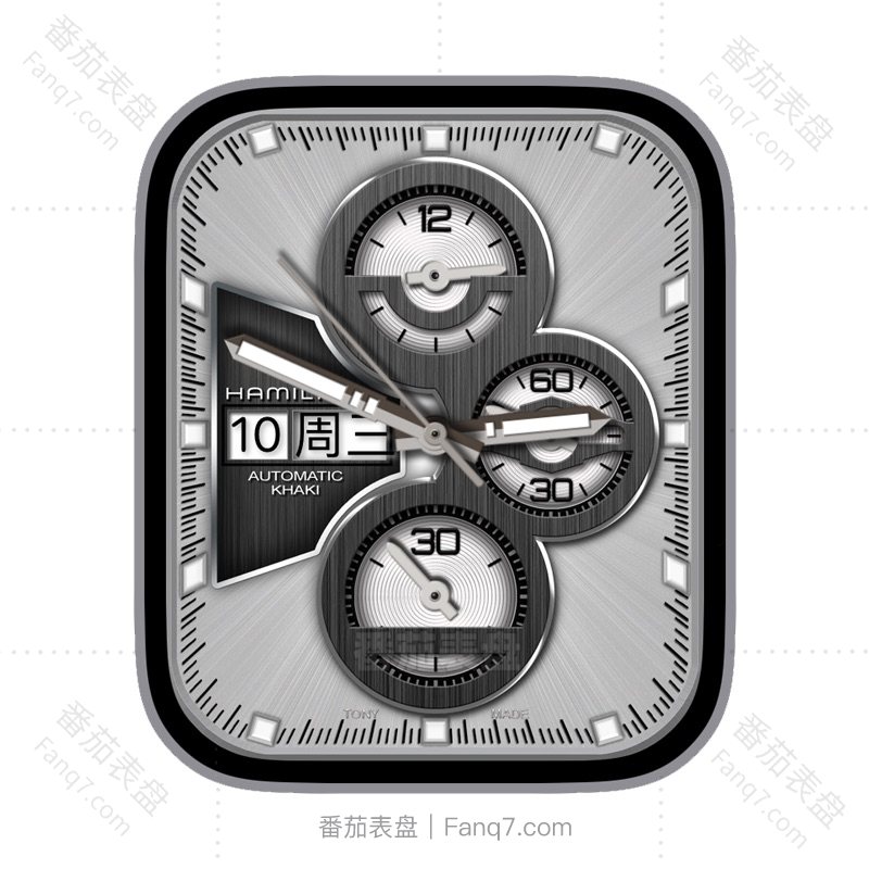 Hamilton汉米尔顿银色拉丝金属风日志星期刻度指针三盘表盘.clock&clcok2
