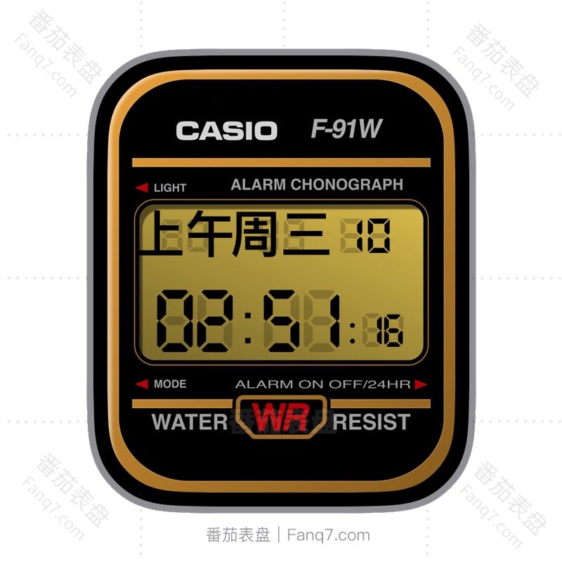 CASIO卡西欧F-91W复古LCD面板上下午星期日志数字时间表盘.clock&clcok2