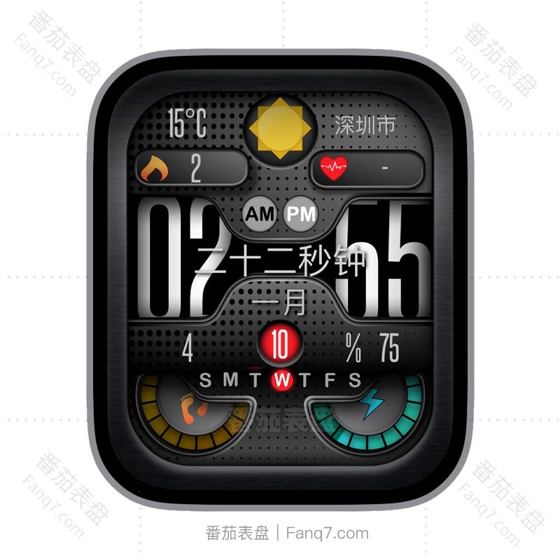 黑色金属网眼温度卡路里心率日志星期电量数字时间表盘.clock&clcok2