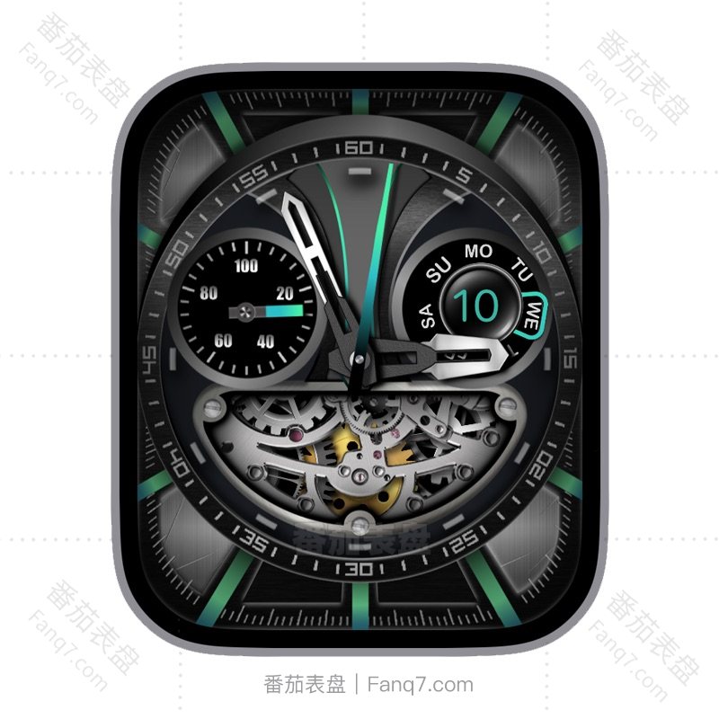 创意猫脸圆盘深灰金属齿轮电量星期日志刻度绿色指针表盘.clock&clcok2