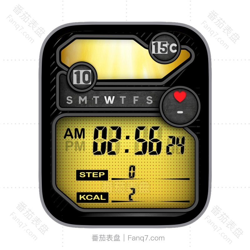 复古黄色LCD步数卡路里星期日志温度心率数字时间表盘.clock&clcok2