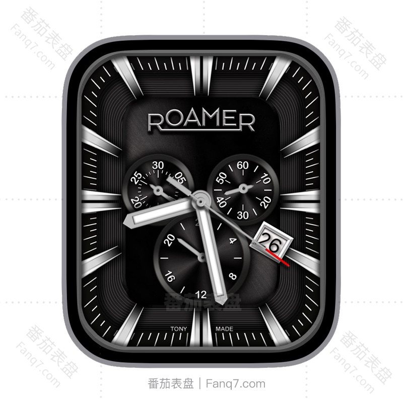 ROAMER瑞士罗马表酷黑银色刻度指针日志三盘表盘.clock&clcok2
