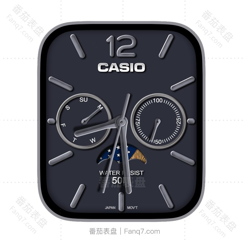 CASIO卡西欧深灰月相星期电量简约指针表盘.clock&clcok2