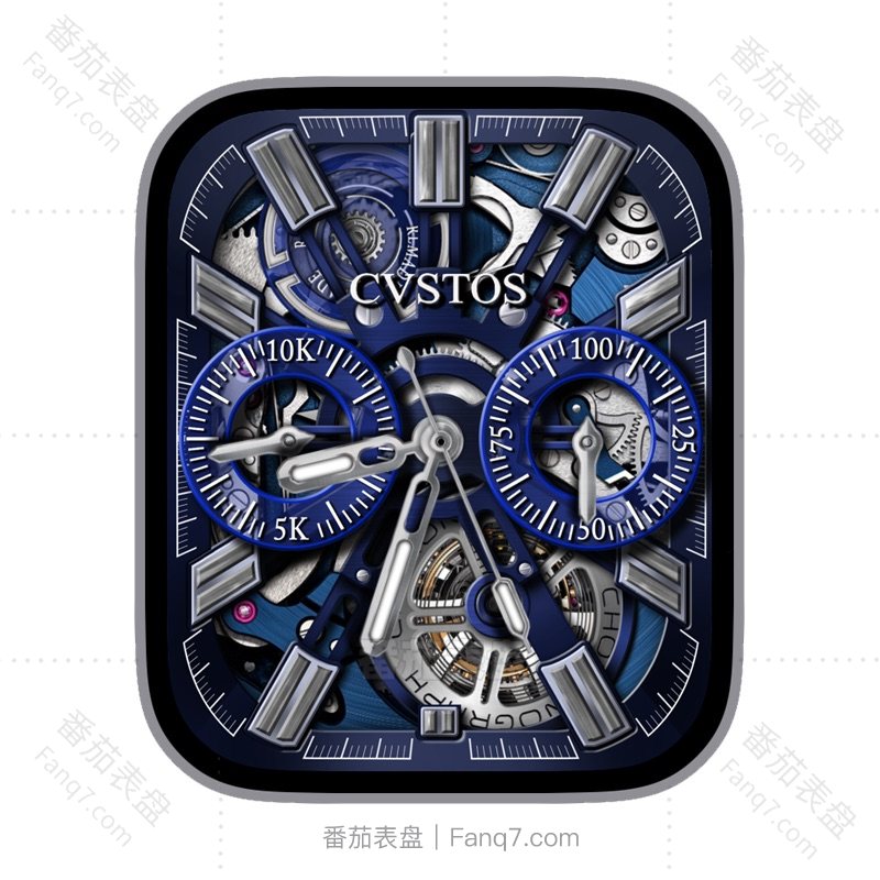 CVSTOS卡斯托斯蓝色机械齿轮宝石机芯多功能步数电量刻度指针双盘表盘.clock&clcok2
