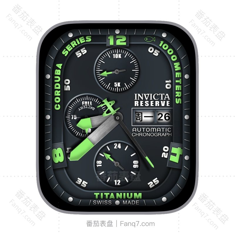 INVICTA英弗他深色背景星期日志电量步数刻度指针ultra表盘.clock&clcok2