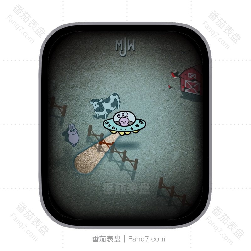 MJW动画主题黑夜农场奶牛外星人表盘.clock&clcok2