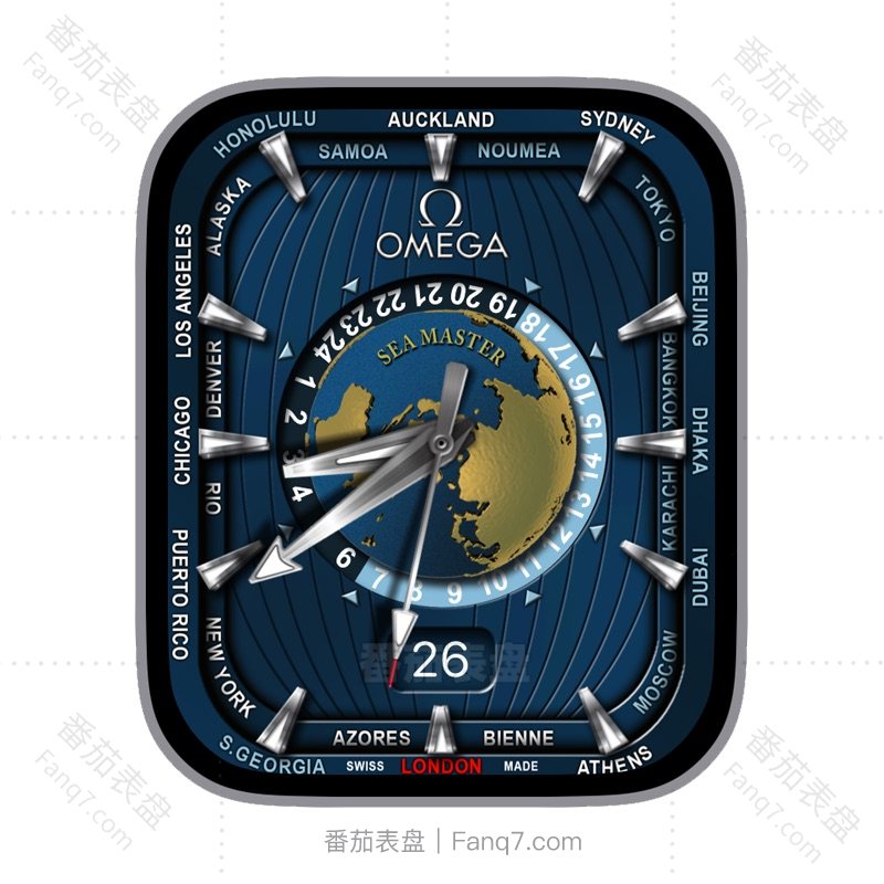 OMEGA欧米茄SEAMASTER蓝色地球仪日志刻度指针表盘.clock&clcok2