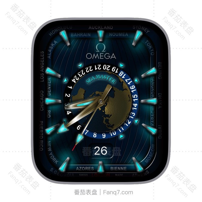 OMEGA欧米茄SEAMASTER暗色地球仪日志刻度指针表盘.clock&clcok2
