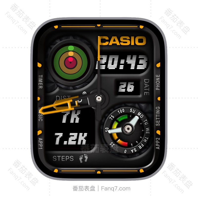 CASIO卡西欧多功能步数电量星期日志数字时间表盘.clock&clcok2