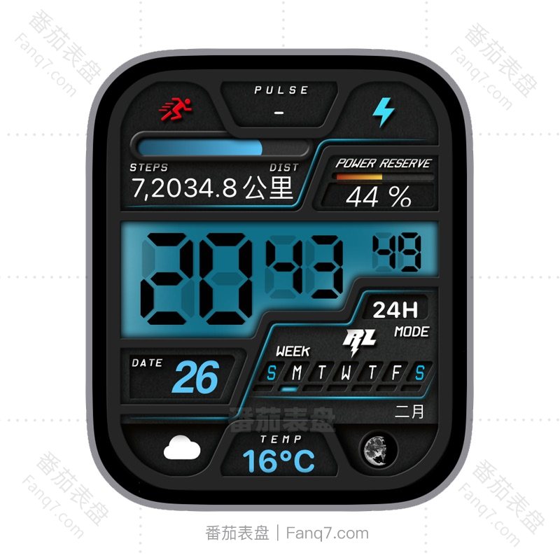 RL酷黑多功能步数电量星期日志温度天气数字时间表盘.clock&clcok2