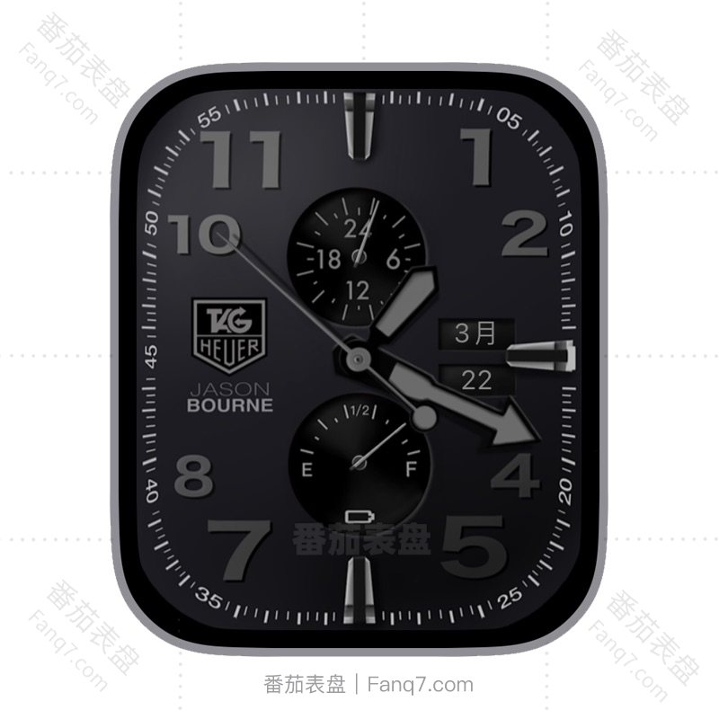 TAGHEUER泰格豪雅深色背景电量日志刻度指针双盘表盘.clock&clock2