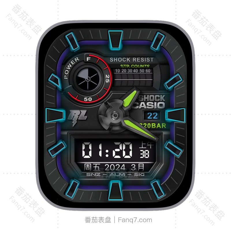 CASIO卡西欧G-SHOCK荧光背景电量日志数字数据日期单盘ultra表盘.clock&clock2