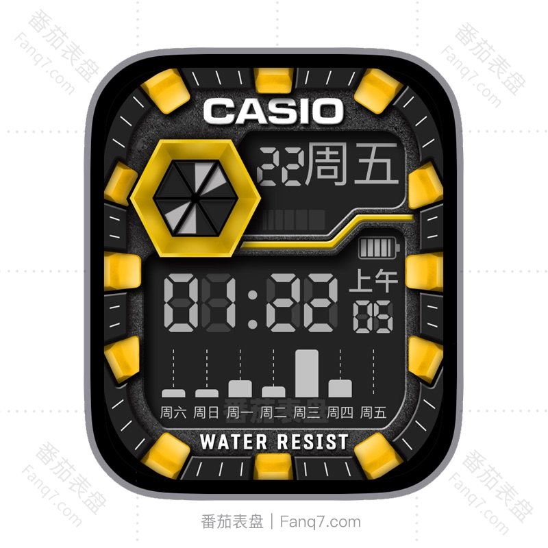CASIO橙色刻度点了星期日志电量数字时间ultra表盘.clock&clock2