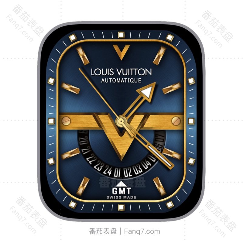 LV路易威登蓝色回纹日志金属背景金色指针ultra表盘.clock&clock2