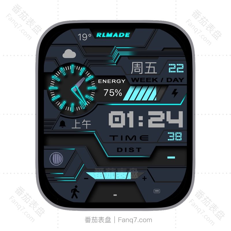 RL科技感马赛克风格多功能电量步数温度数字时间ultra表盘.clock&clock2