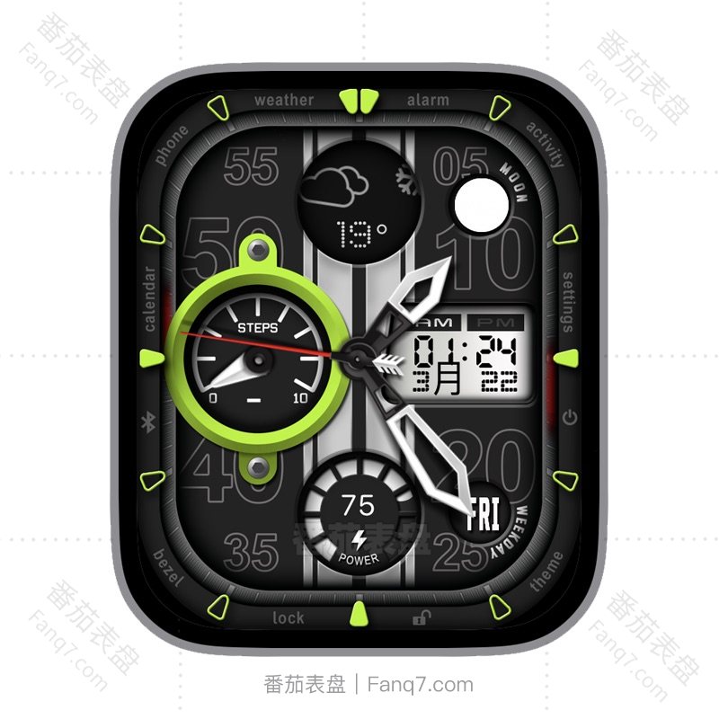 灰绿配色多功能天气温度步数点了刻度指针电量LCD数字时间表盘.clock&clock2
