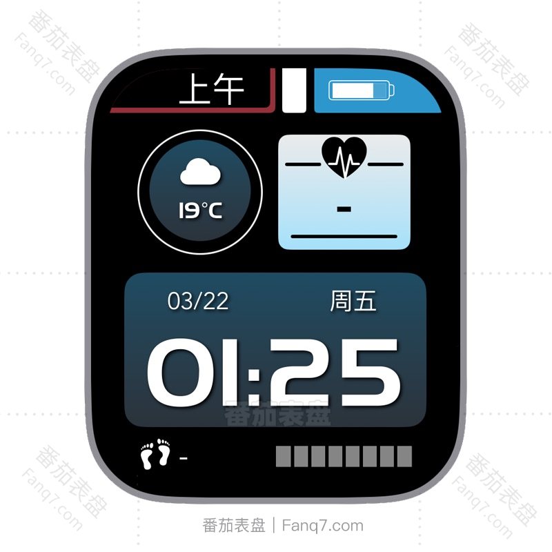 酷黑科技感多功能电量天气温度日志步数心率数字时间表盘.clock&clock2