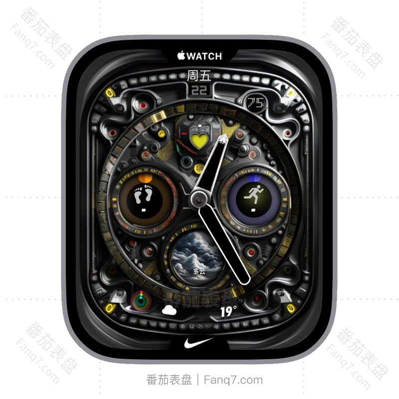 苹果复古工业风机械多功能天气步数心率天气刻度指针三盘表盘.clock&clock2