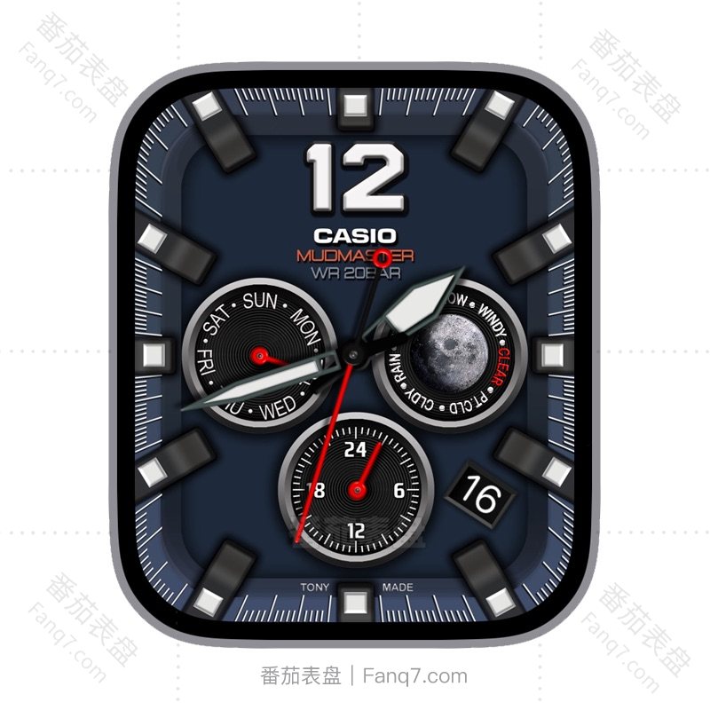 CASIO卡西欧MUDMASTER深蓝背景日志刻度指针三盘表盘.clock&clock2