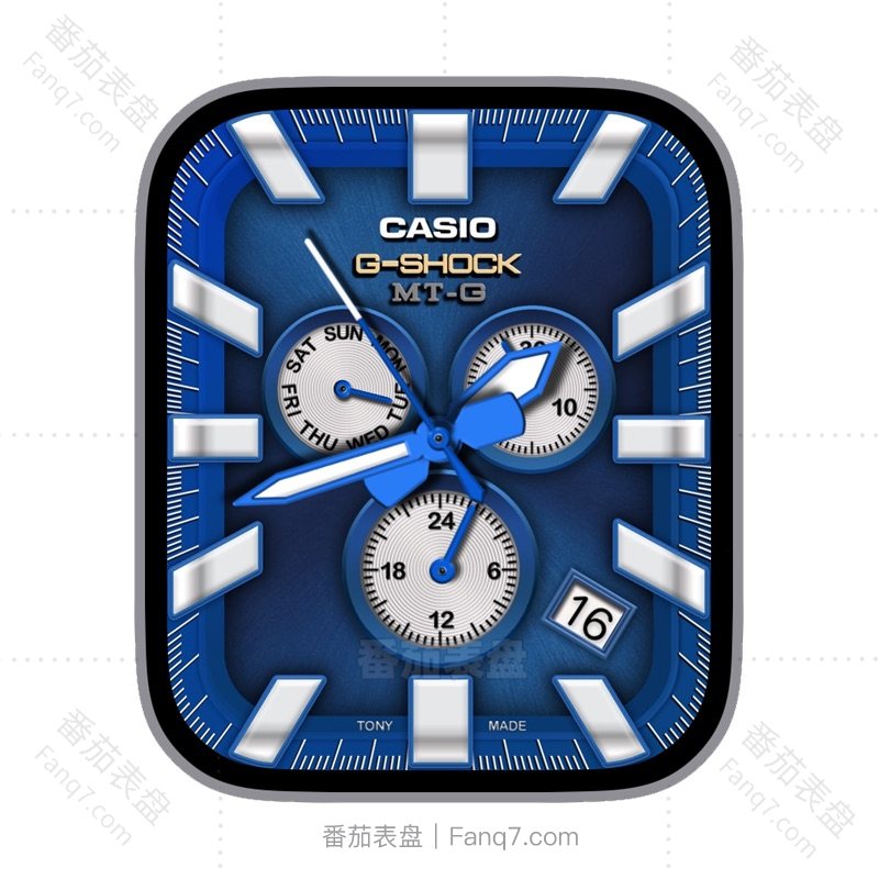 CASIO卡西欧蓝色金属拉丝星期日志刻度指针三盘表盘.clock&clock2