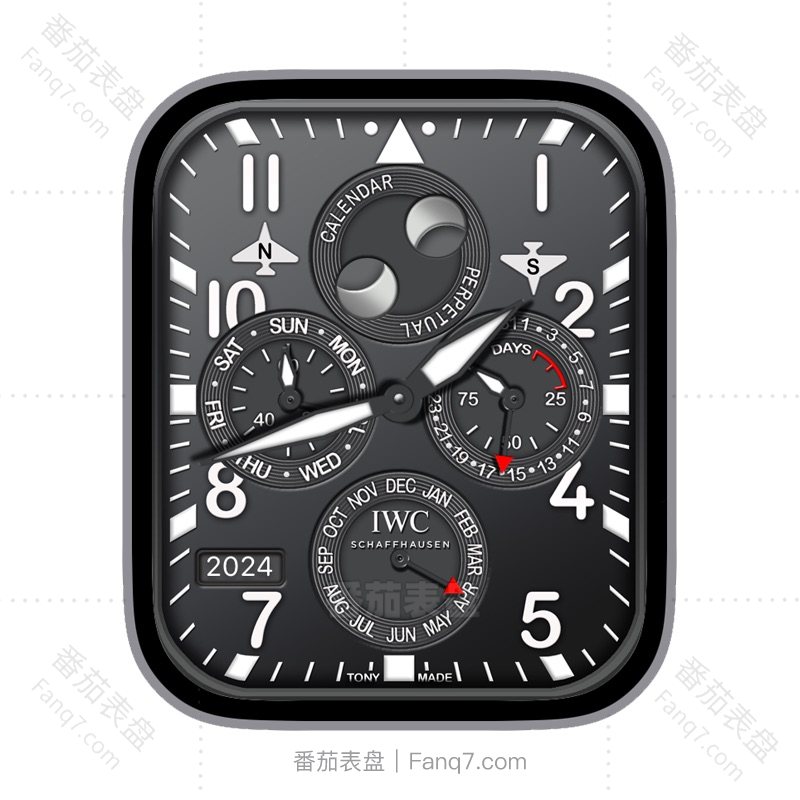 IWC万国灰色背景多功能月份星期电量刻度指针四盘表盘.clock&clock2