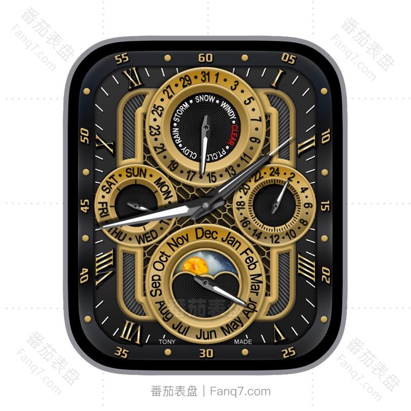 奢华金色背景多功能天气月历星期刻度指针四盘表盘.clock&clock2