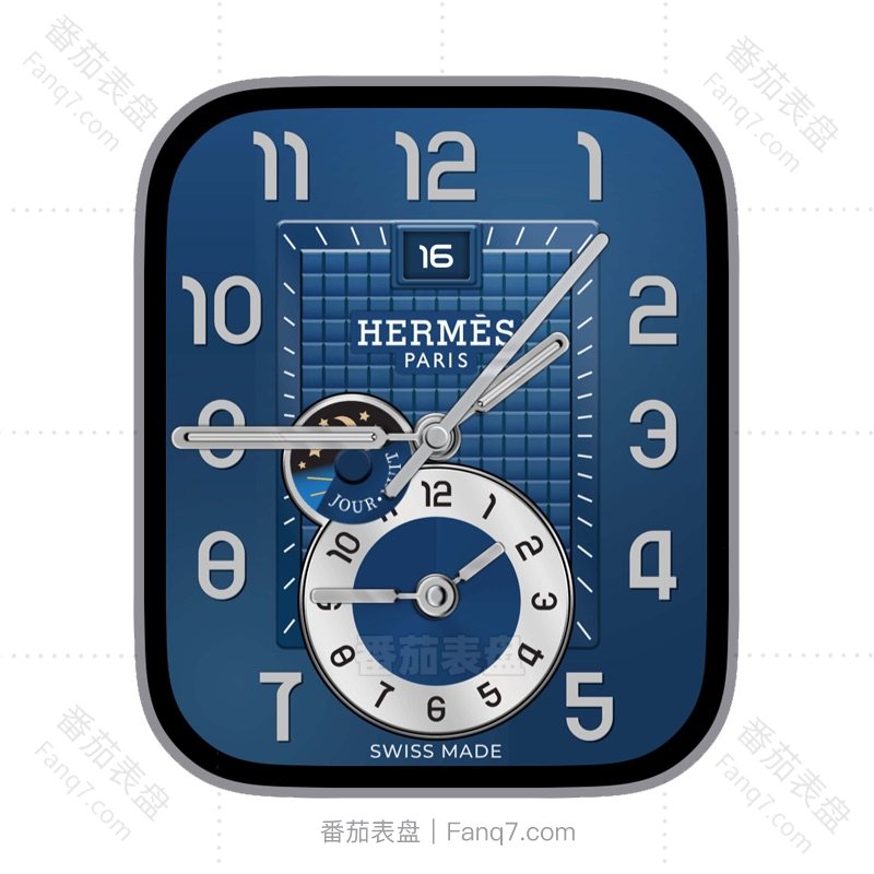 HERMES爱马仕ROYALE蓝色背景月相指针双盘表盘.clock&clock2