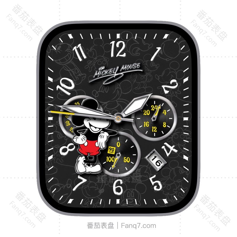 MICKEY MOUSE米奇背景星期电量刻度指针三盘表盘.clock&clock2