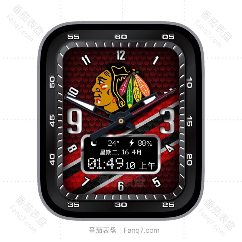 NHL芝加哥黑鹰红黑白蜂窝背景多功能温度电量数字时间刻度指针表盘.clock&clock2