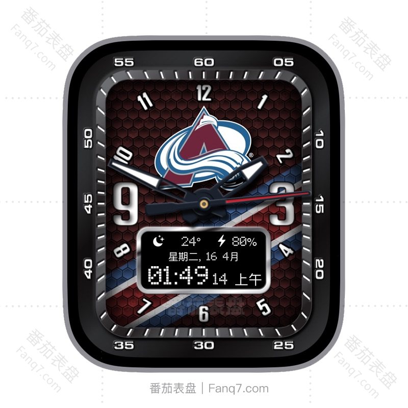 NHL科罗拉多雪崩红蓝蜂窝背景多功能温度电量数字时间刻度指针表盘.clock&clock2
