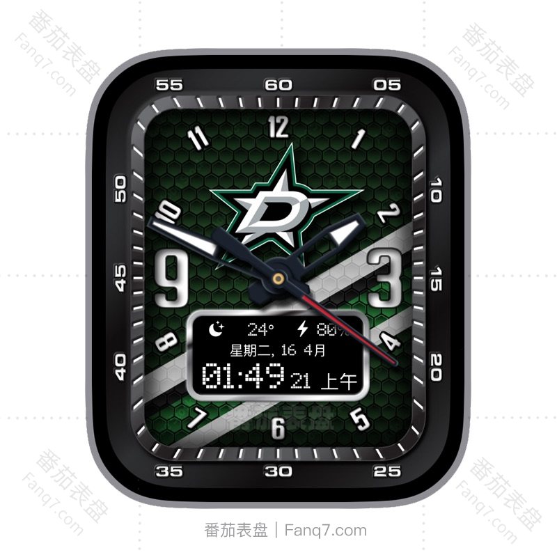 NHL达拉斯星绿白蜂窝背景多功能温度电量数字时间刻度指针表盘.clock&clock2