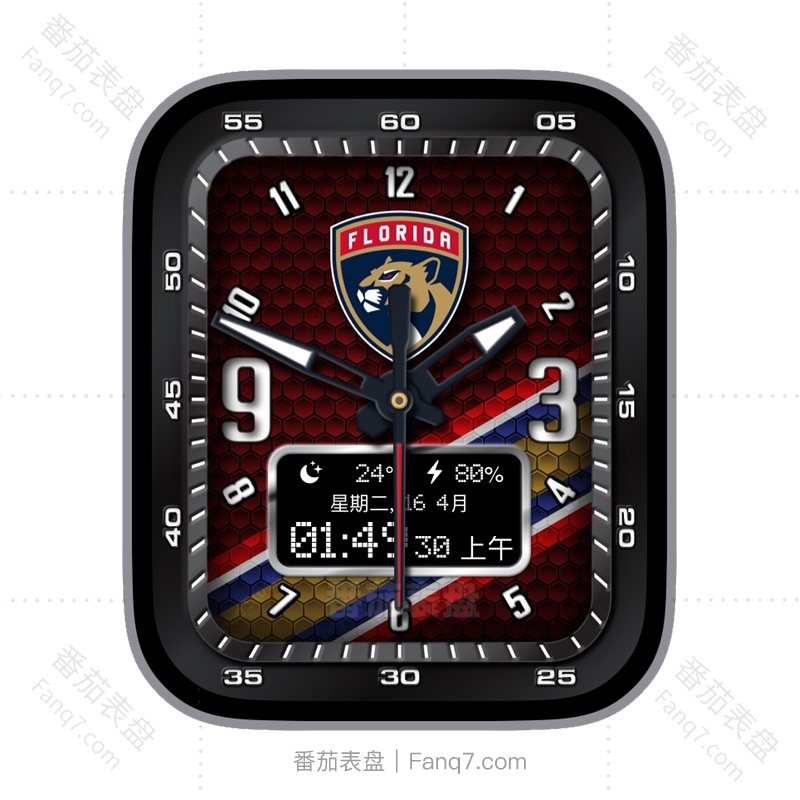 NHL佛罗里达美洲豹红白蜂窝背景多功能温度电量数字时间刻度指针表盘.clock&clock2