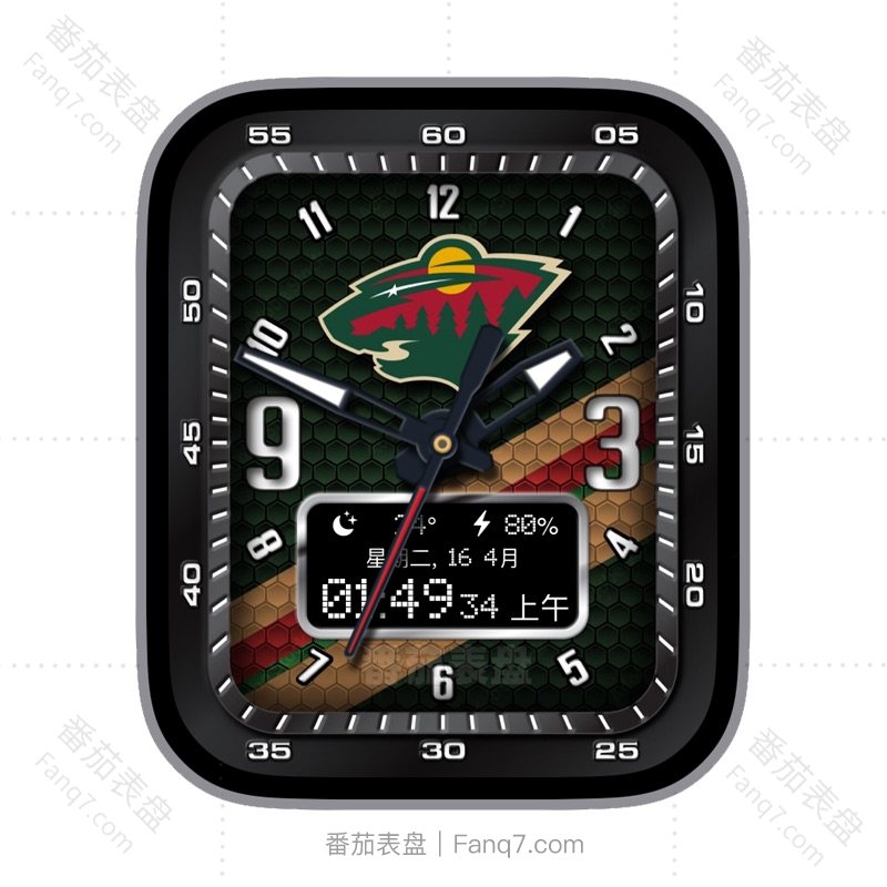 NHL明尼苏达狂野绿黄蜂窝背景多功能温度电量数字时间刻度指针表盘.clock&clock2