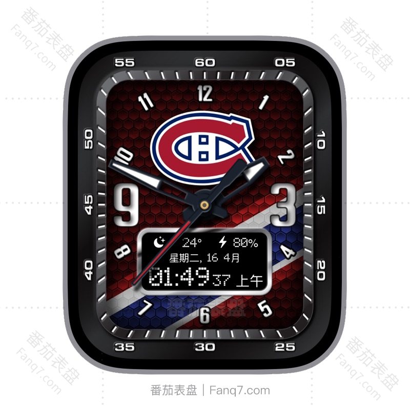 NHL蒙特利尔加拿大人红蓝白蜂窝背景多功能温度电量数字时间刻度指针表盘.clock&clock2