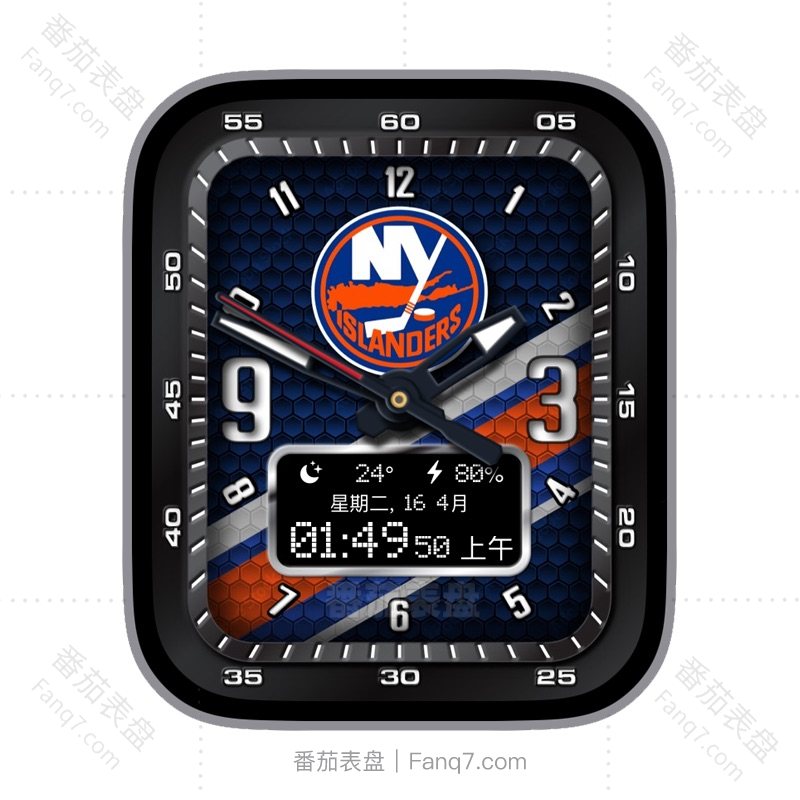 NHL纽约岛人红白蜂窝背景多功能温度电量数字时间刻度指针表盘.clock&clock2