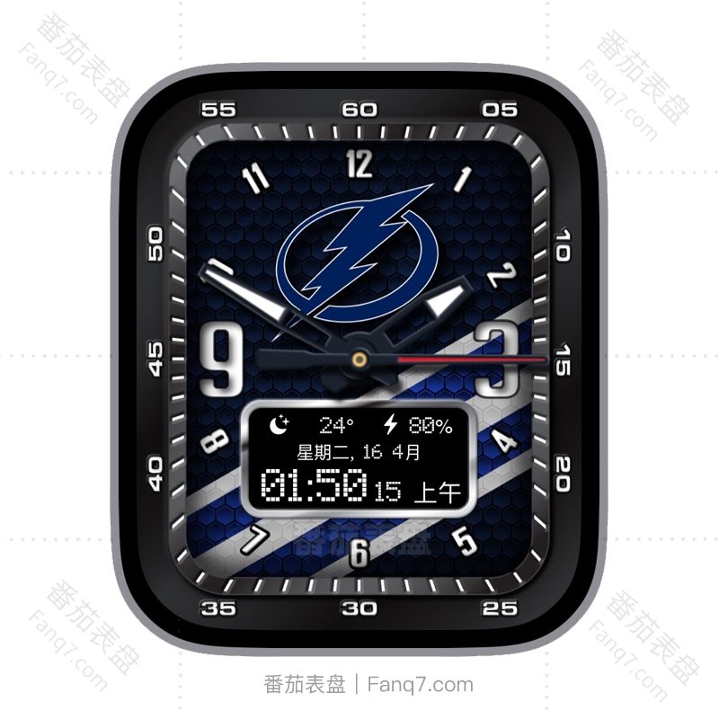 NHL坦帕湾闪电蓝白蜂窝背景多功能温度电量数字时间刻度指针表盘.clock&clock2