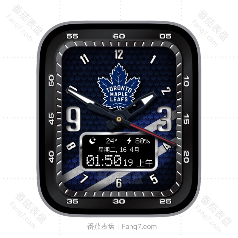 NHL多伦多枫叶蓝白蜂窝背景多功能温度电量数字时间刻度指针表盘.clock&clock2