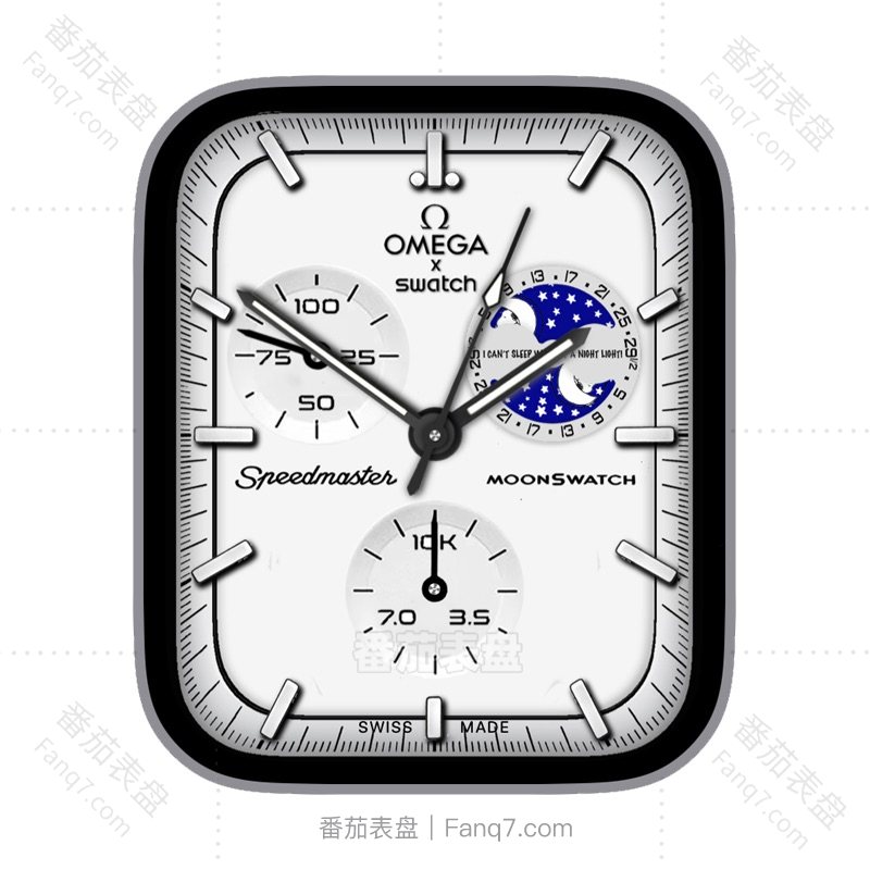 OMEGA欧米茄史努比白色月相步数电量刻度指针三盘表盘.clock&clock2