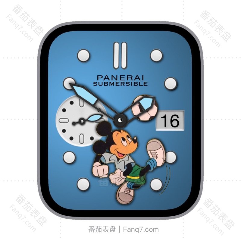 PANERAI沛纳海蓝色背景米奇踢足球日志指针表盘.clock&clock2