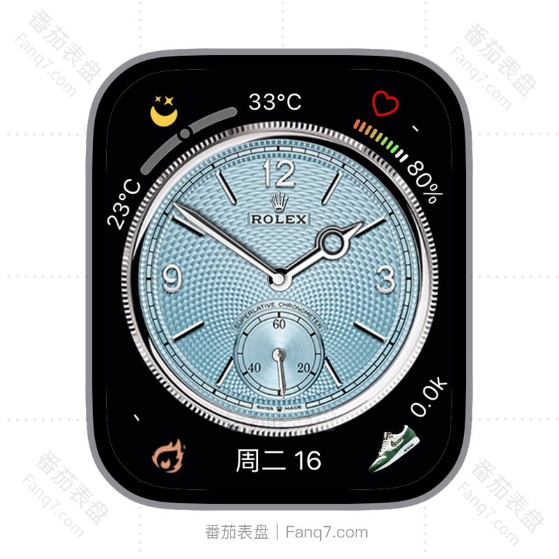 ROLEX劳力士1908冰蓝色圆盘多功能温度心率电量步数刻度指针双盘表盘.clock&clock2