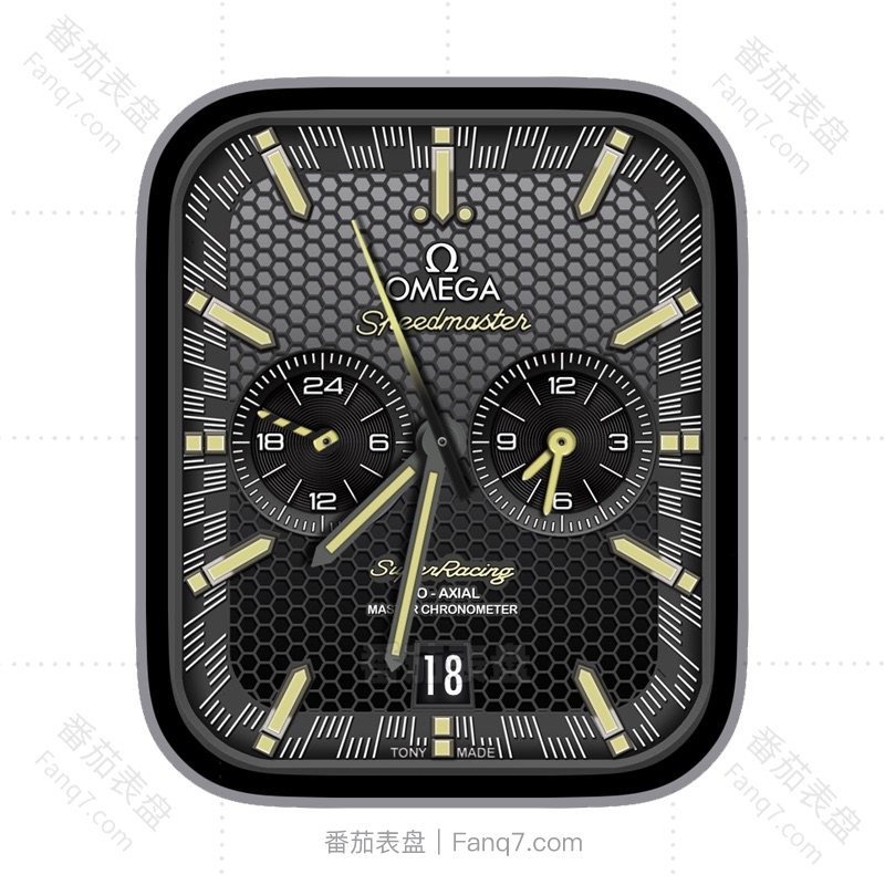 OMEGA欧米茄黑色蜂窝背景日志刻度指针双盘表盘.clock&clock2