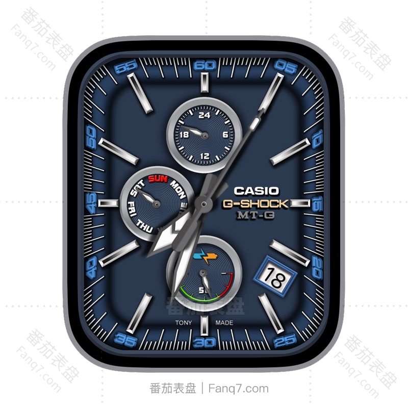 CASIO卡西欧灰蓝G-SHOCK多功能电量星期日志刻度指针三盘表盘.clock&clock2