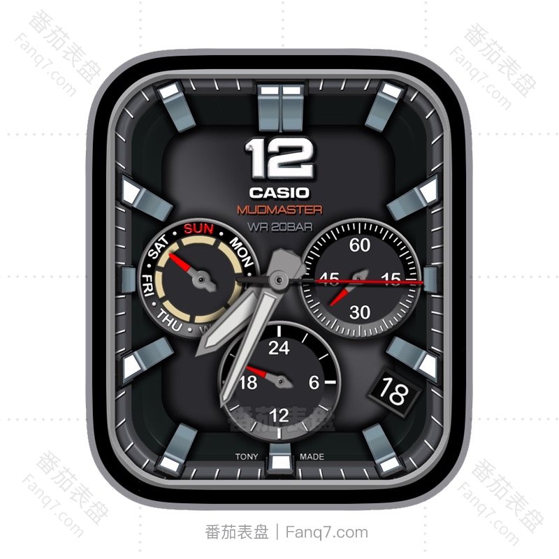 CASIO深灰日志星期刻度指针三盘表盘.clock&clock2