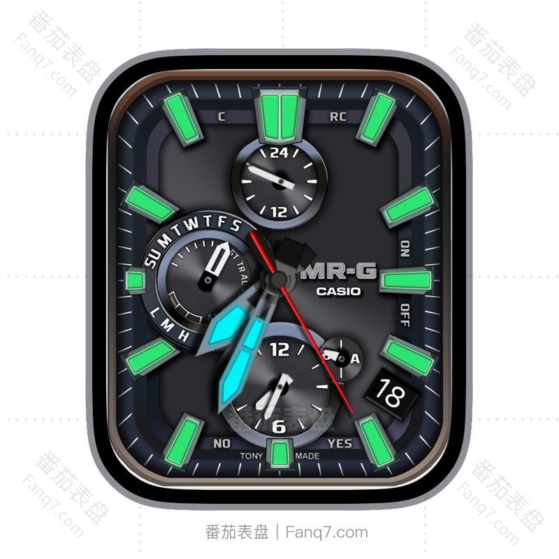 CASIO卡西欧MR-G黑色渐变荧光刻度指针三盘表盘.clock&clock2